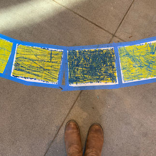 This spiral consisted of handmade scratch paper and large sanded sticks. The participants were asked to drag a stick along the paper as they walked the spiral. The mark making revealed a change over time that mimicked the darkest day and the coming light. The slow pace asked people to consider this natural transition in a way that the busy pace of life might not.
